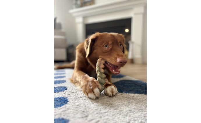 Daarnaast zijn Nylabone-botten ontworpen om geleidelijk te slijten. Kleine deeltjes die je hond eventueel inslikt, zijn onschadelijk en passeren vanzelf. Anders dan bij echte botten of stokken is er dus geen risico op scherpe splinters of verstikking. Wel is het belangrijk om het bot te vervangen zodra het zo klein wordt dat je hond het in zijn geheel zou kunnen doorslikken – dit is bij elk soort kauwspeelgoed een goede richtlijn.
