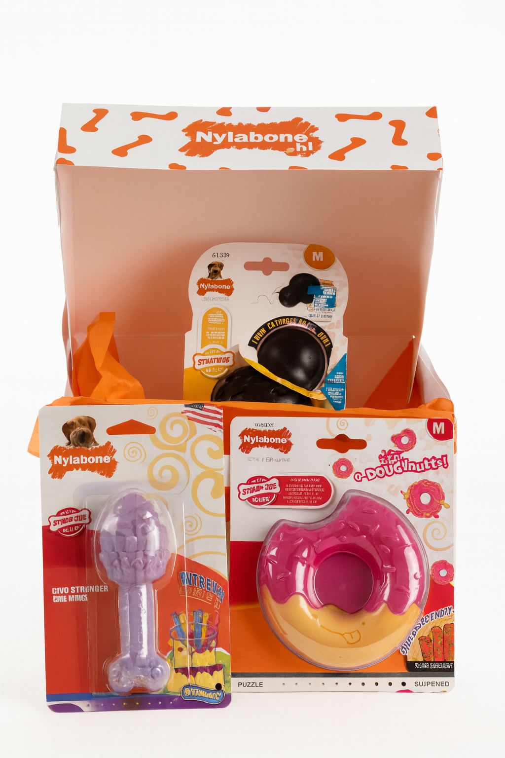 Ontdek de Nylabone Black Friday Box – Special Edition, speciaal samengesteld voor honden tot 16 kg die dol zijn op kauwen. Deze limited box bevat drie premium Nylabone topproducten: