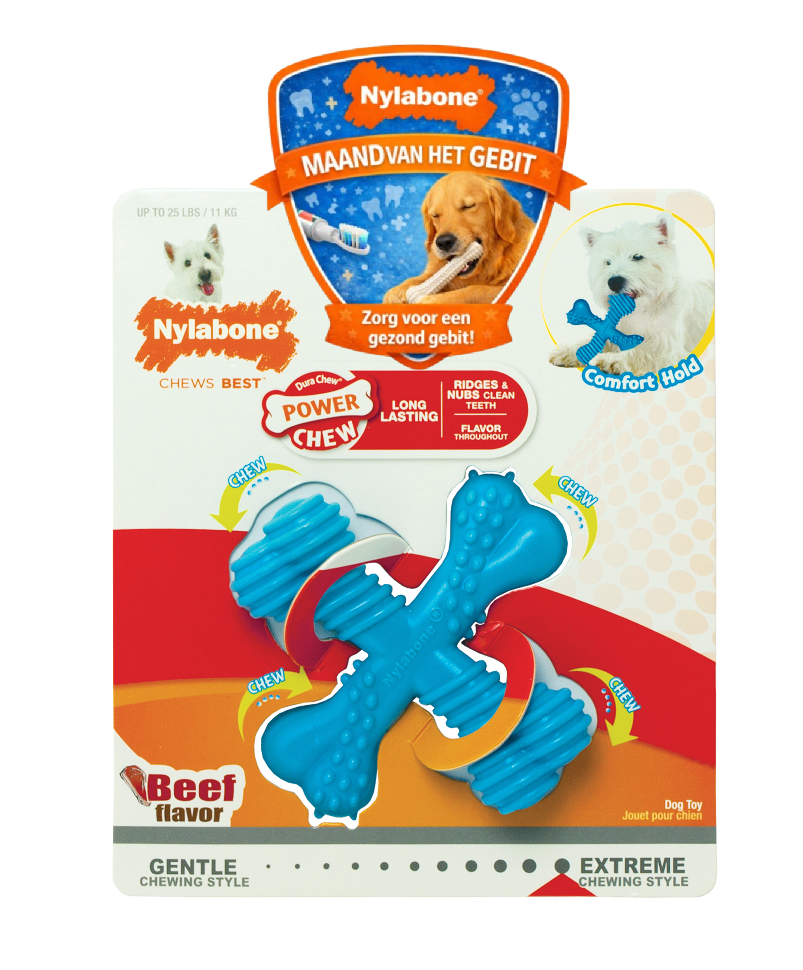 De Nylabone Extreme Chew Power Chew X Bone Small is speciaal ontworpen voor honden met een zeer sterke kauwbehoefte. Dit robuuste kauwbot is ideaal voor power chewers die andere speeltjes snel kapot maken. Dankzij het iconische X-vormige ontwerp kan je hond het bot gemakkelijk vasthouden en vanuit verschillende hoeken kauwen, wat zorgt voor langdurig en bevredigend kauwplezier.
