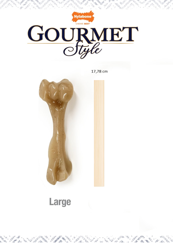 Geïnspireerd door het gevoel van voldoening dat komt met de perfecte kauwbeurt, zijn de Gourmet Style kauwspeeltjes van Nylabone speciaal ontworpen voor smaakbewuste honden die op zoek zijn naar een nieuwe en smakelijke kauwervaring. Na decennia van expertise heeft Nylabone dit unieke kauwspeelgoed ontwikkeld, met smakelijke smaakstukjes die je kunt zien—zelfs de kieskeurige honden zullen genieten van urenlang kauwplezier!