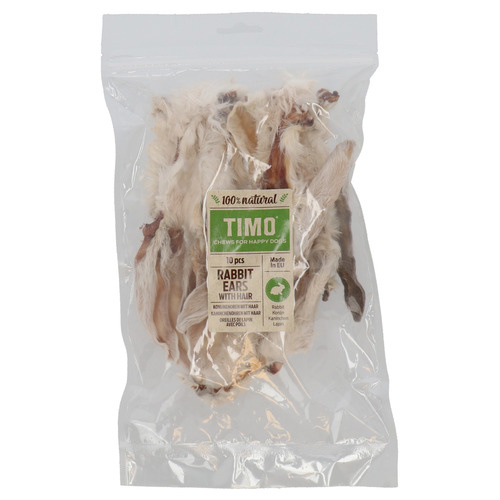 Geef je hond een gezonde en smakelijke traktatie met de Timo Konijnenoren met Vacht. Deze volledig natuurlijke kauwsnack is gemaakt van 100% konijn en bevat geen kunstmatige toevoegingen. Een pure beloning die niet alleen lekker is, maar ook bijdraagt aan de gezondheid van je hond.