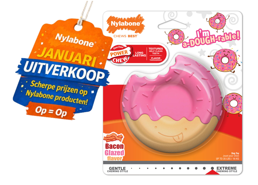Nylabone Power Chew Donut – Giant Bacon Glazed Smaak