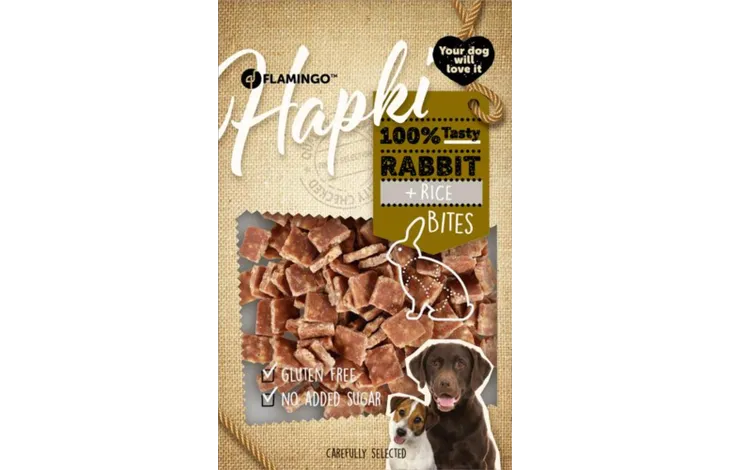 Verwen jouw trouwe viervoeter met de heerlijke Hapki Stukjes met konijn & rijst van Flamingo. Deze smakelijke hondensnack is gemaakt van hoogwaardige ingrediënten en is 100% natuurlijk, zonder toegevoegde suikers en volledig glutenvrij. Ideaal als tussendoortje of als beloning tijdens training.